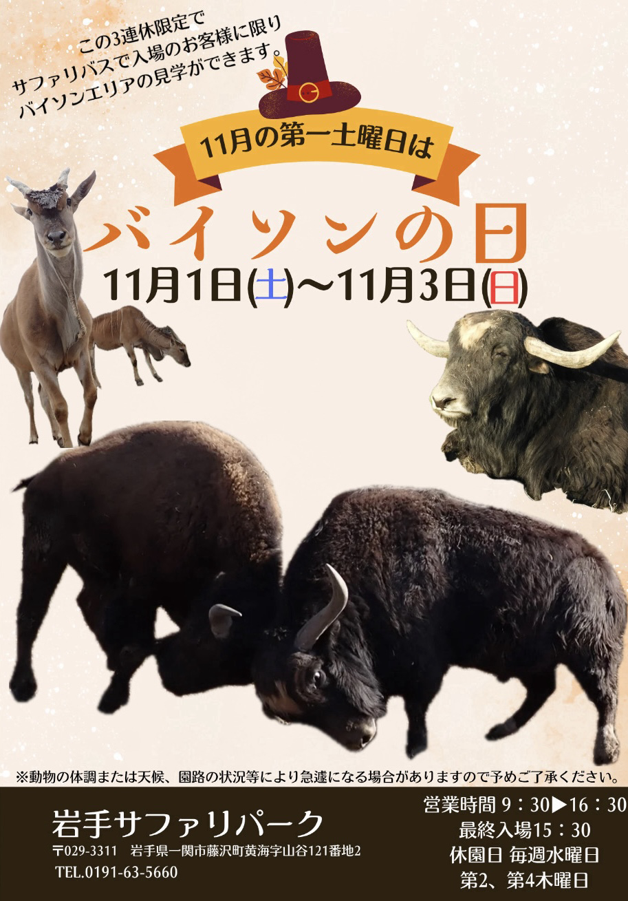 サファリバスで入場のお客様に限りバイソンエリアの見学ができます。