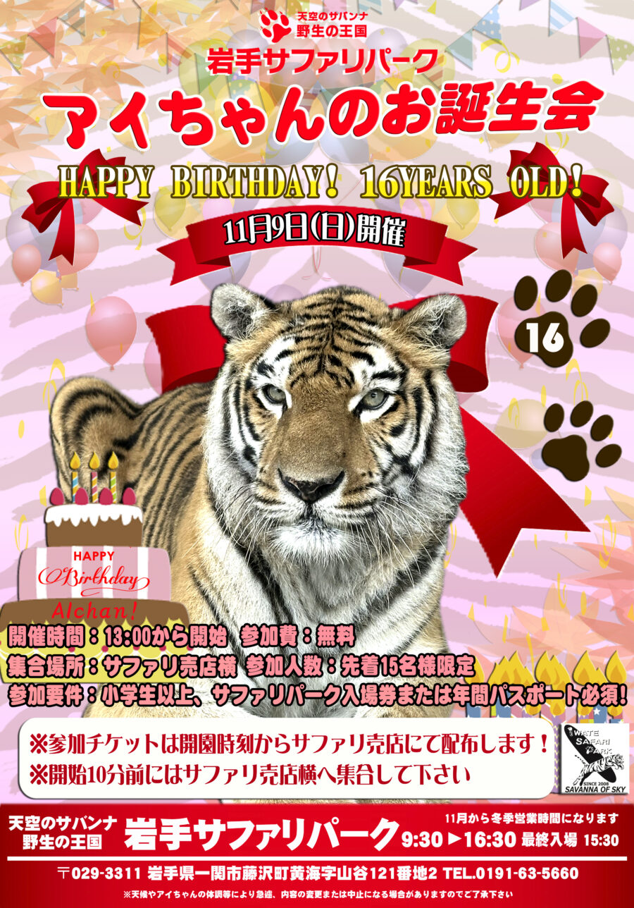これを記念して11月9日(日)にアイちゃんのお誕生会を開催します!