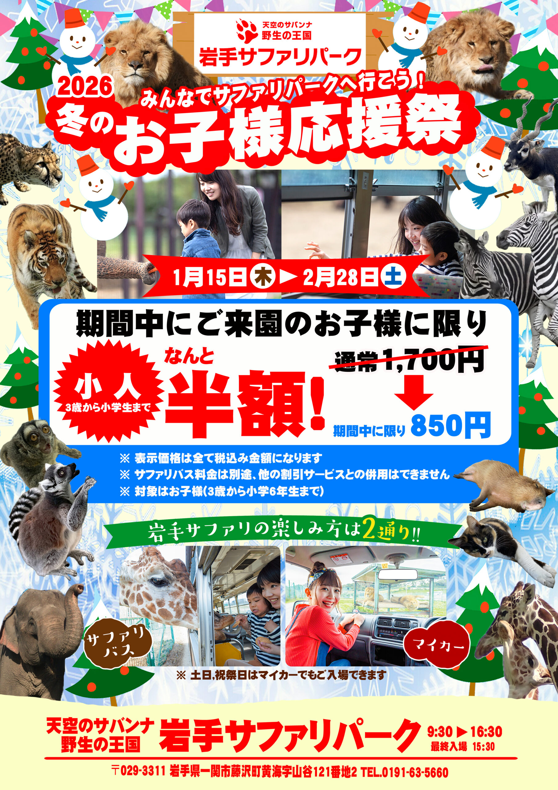 みんなでサファリパークへ行こう!【冬のお子様応援祭】を開催します。