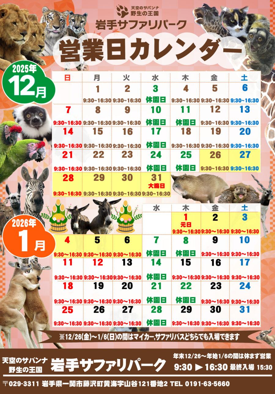 ※年末12月26日(金)から来年1月6日(火)までは休まず営業します。