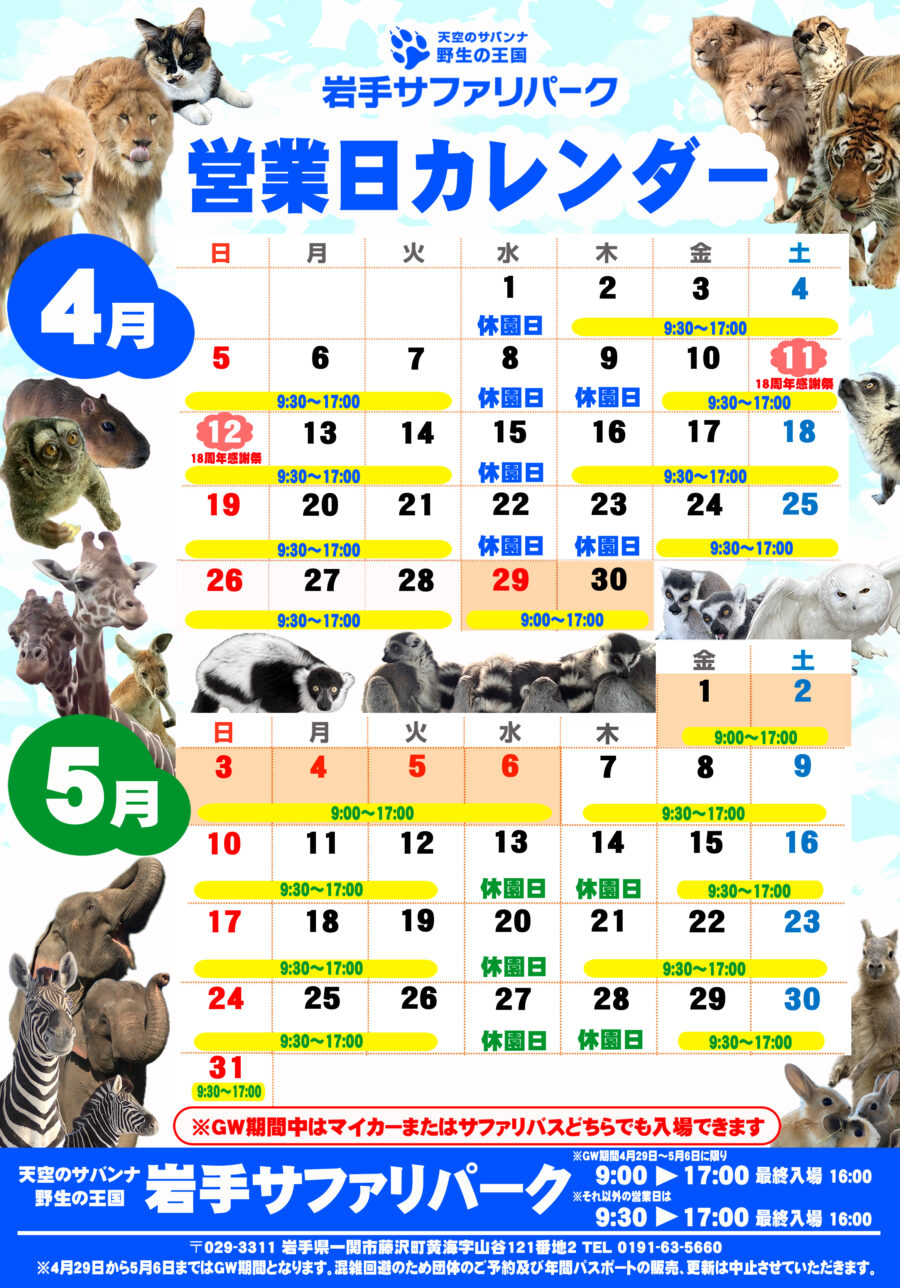 2026年4月・5月の営業のご案内です。